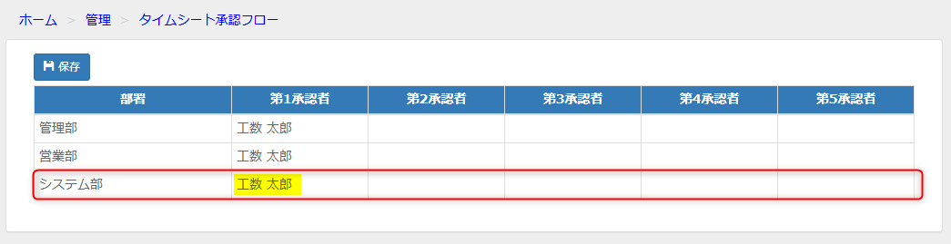 - 確認画面:管理>承認フロー>タイムシート承認フロー