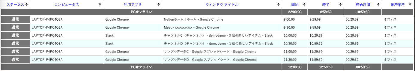 そのため、パソコンの利用ログを管理サーバにアップロードするタイミングが必ずしもリアルタイムではないためです。