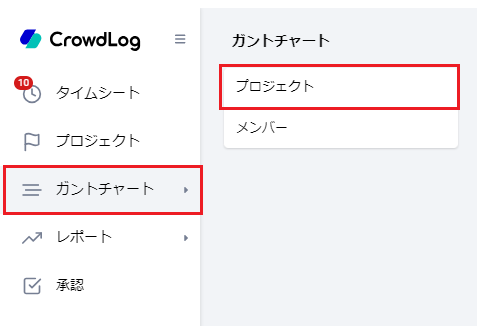 ガントチャートを利用する場合は、 「プロジェクトの種類:ガントチャート」にチェック を