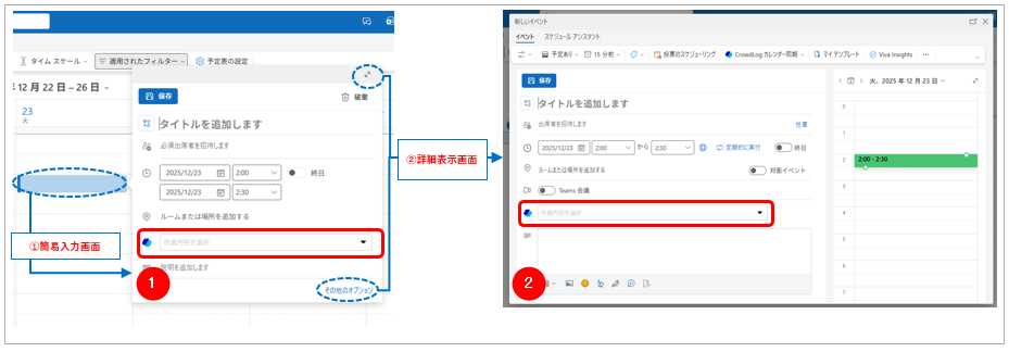 | ① | 予定をクリック | 簡易表示 | 利用不可 |